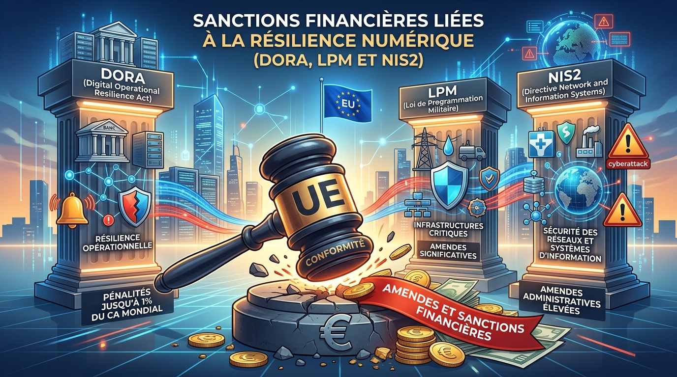 DORA (applicable depuis 17 janvier 2025) impose le cadre, et demande aux États de prévoir des sanctions effectives, proportionnées et dissuasives via leurs autorités compétentes.